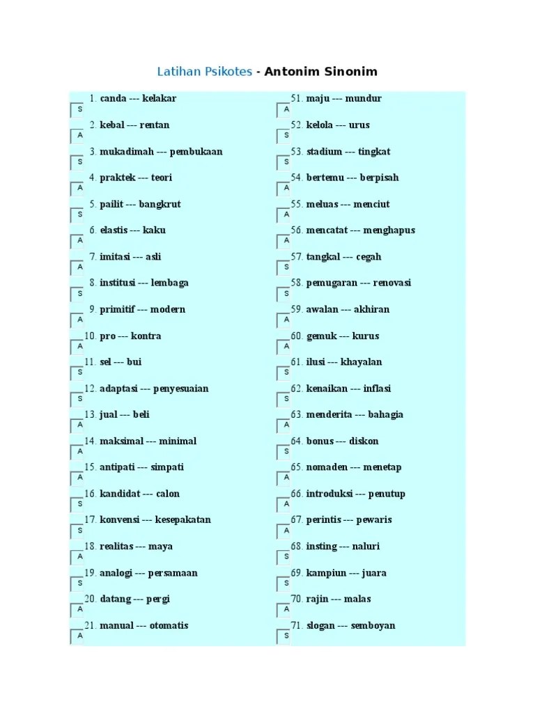 Contoh Soal Psikotes Sinonim Dan Antonim Dan Jawabannya | kumpulan materi pelajaran dan contoh soal 5
