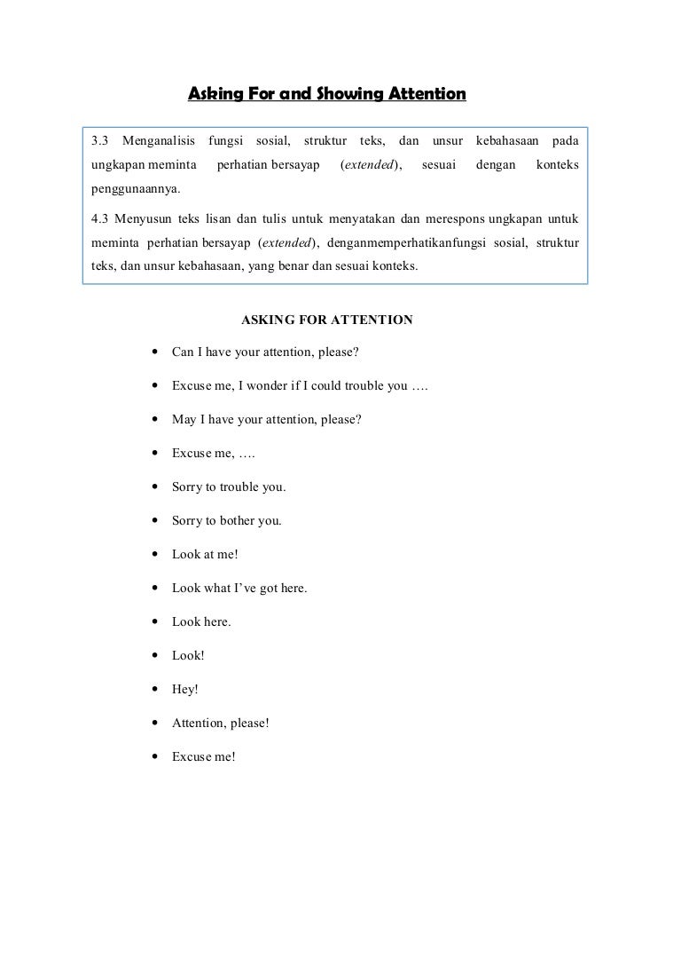Asking and Giving Attention Beserta Contoh Soal Terlengkap - Paja Tapuih