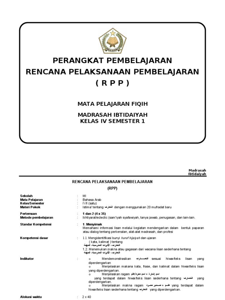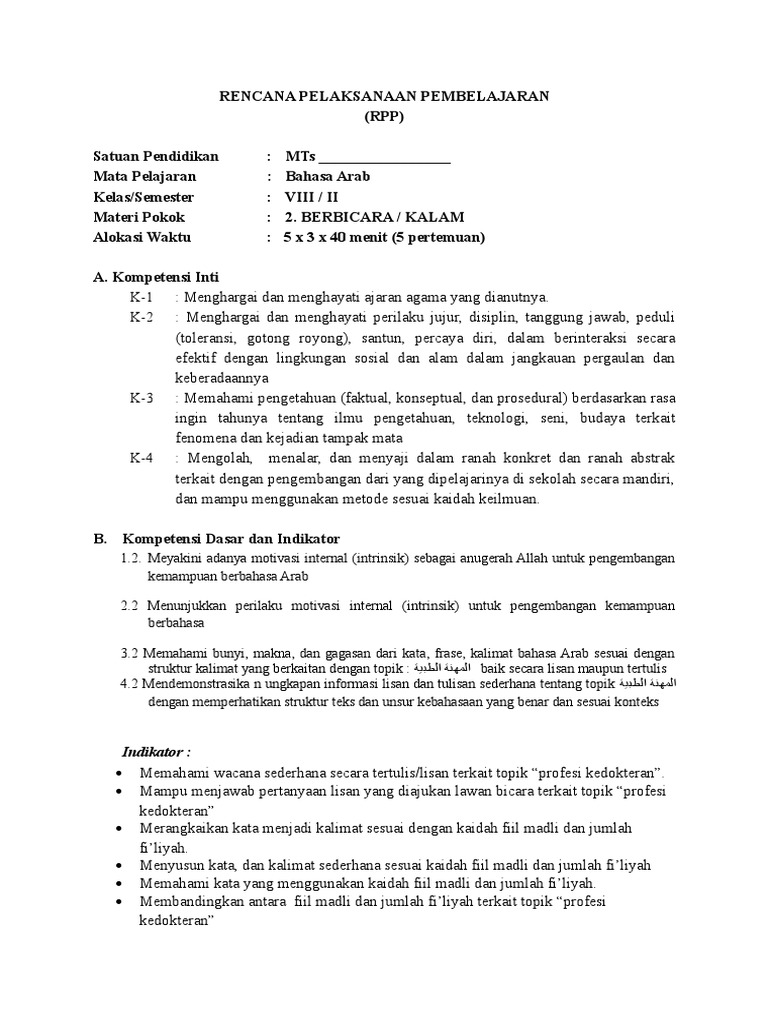DOC) RPP Bahasa Arab MTs Kurikulum 2013 Revisi | mifjan 1984 - Academia.edu