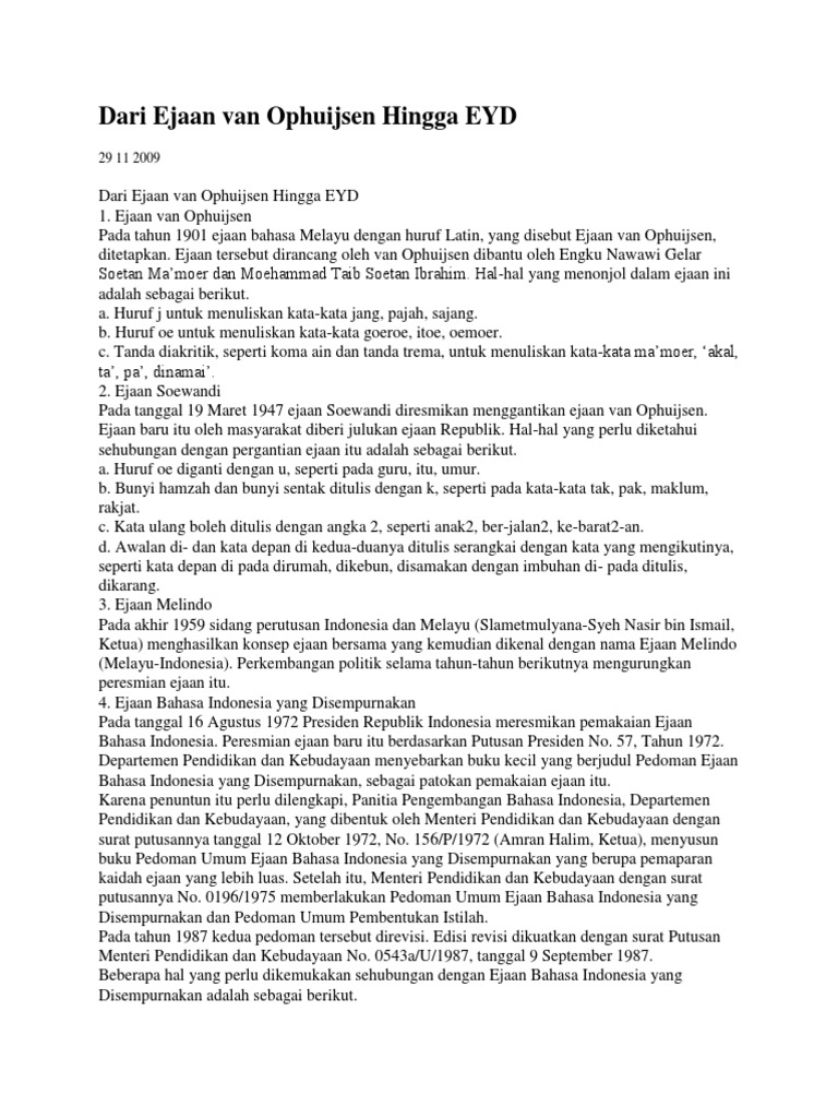 Dari Ejaan Van Ophuijsen Hingga Eyd