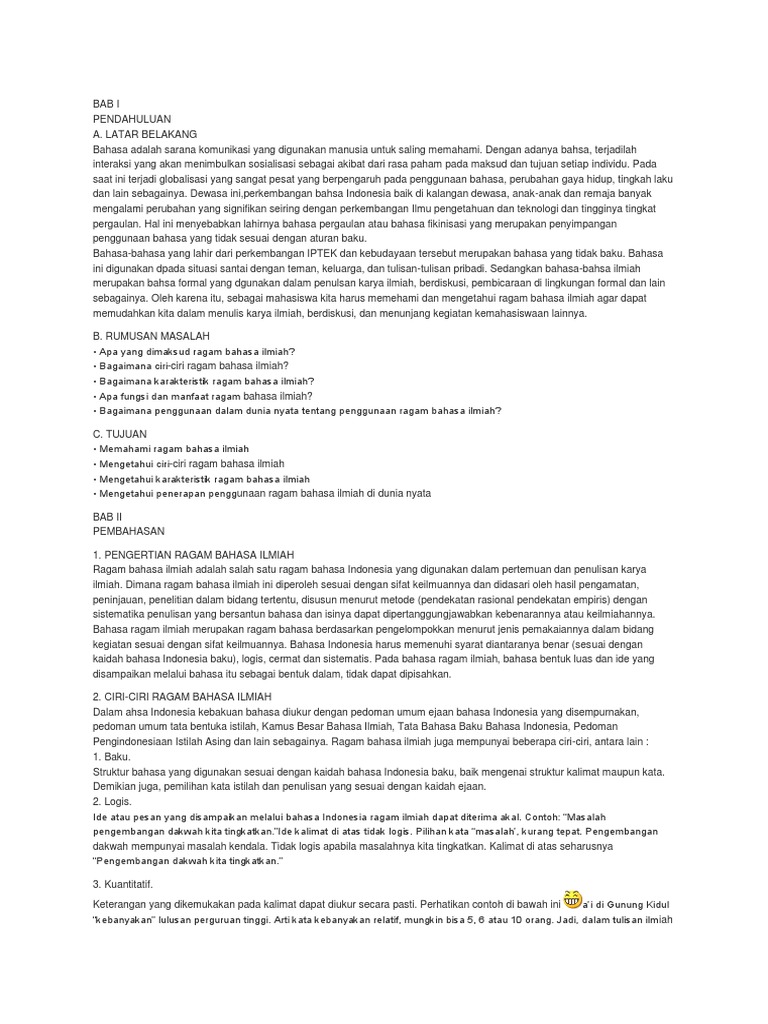 DOC) Bahasa Indonesia Ragam Ilmiah MAKALAH | Sharon Alfa Marlina - Academia.edu