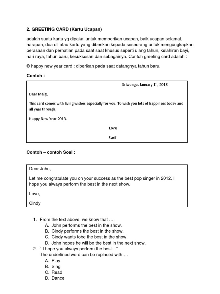 10 Contoh Soal Greeting Card dan Kunci Jawaban Terbaru - Paja Tapuih
