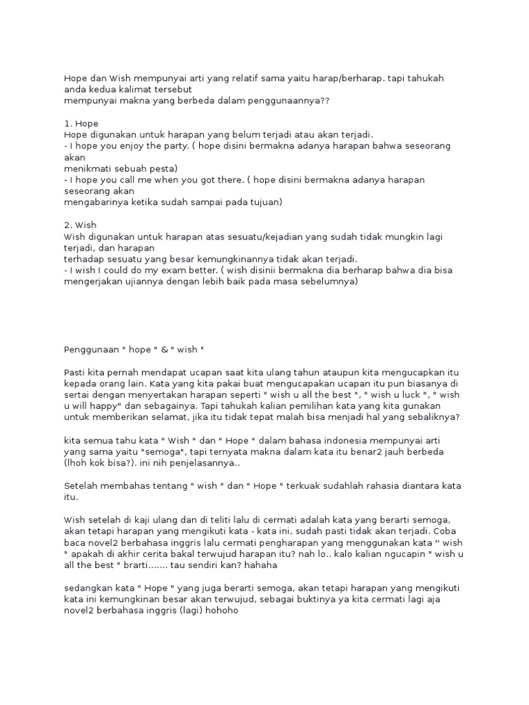 Beda Penggunaan Wish Dan Hope Dalam Kalimat Bahasa Inggris