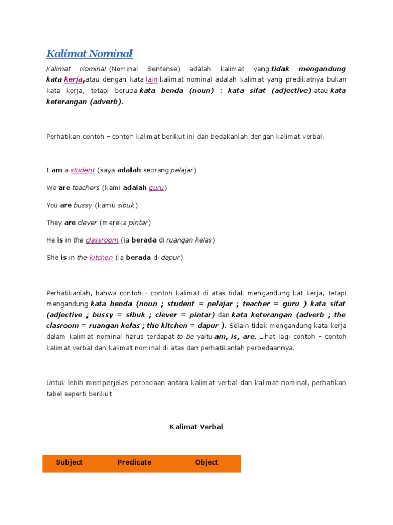 PDF) KALIMAT VERBAL DAN NOMINAL PADA SIMPLE PRESENT | Citra Priski Abadi - Academia.edu
