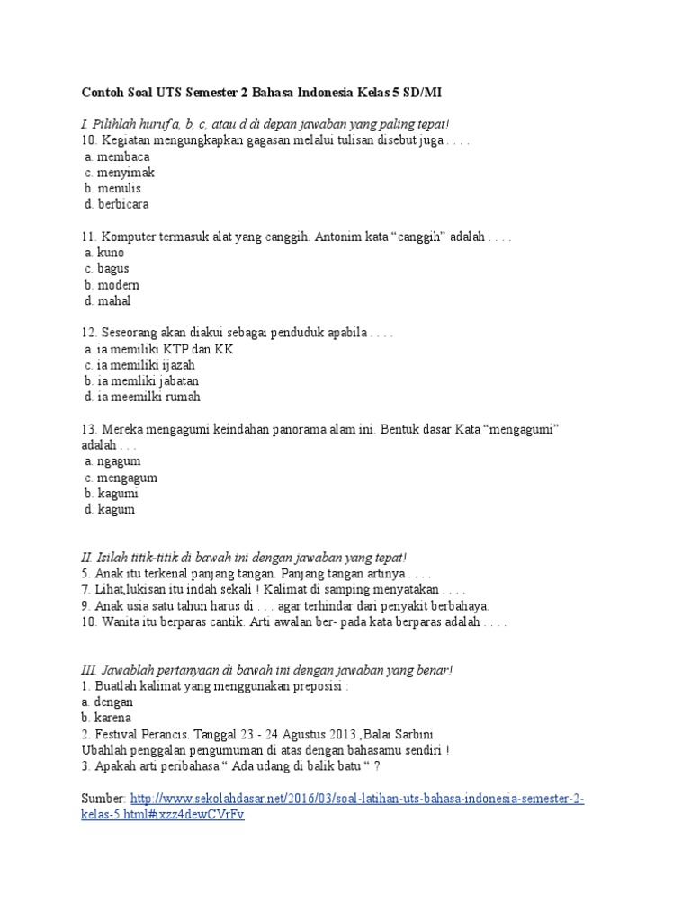Contoh Soal UTS Semester 2