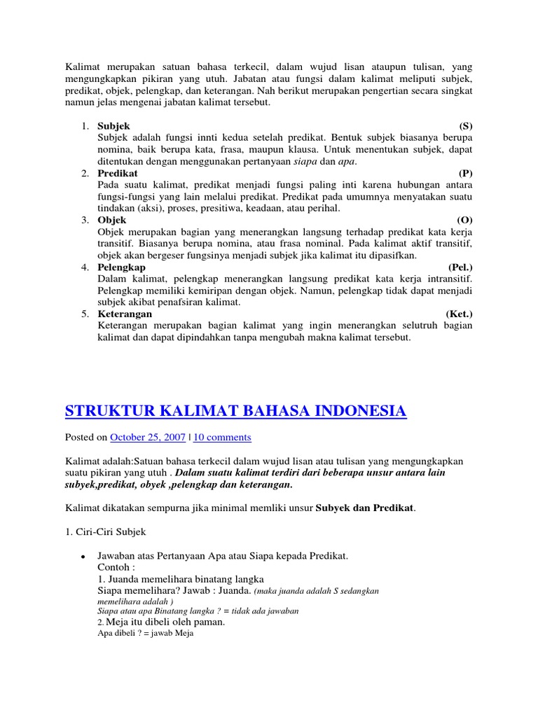 DOC) Definisi dan Contoh Kalimat SPOK | agoes sugie - Academia.edu