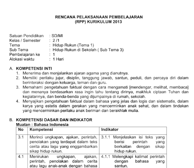 Rpp kelas 2 tema 2 hidup rukun revisi 2018