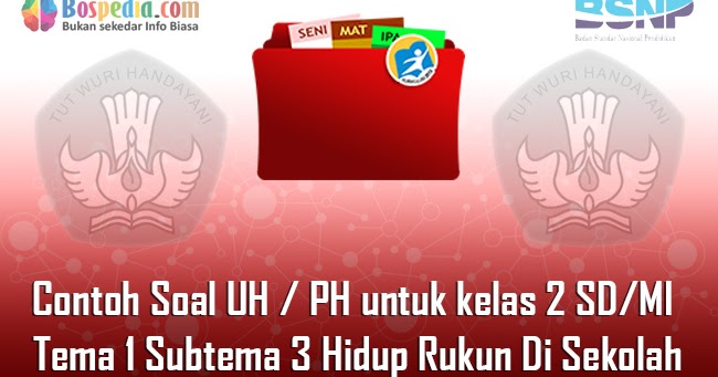 Lengkap - Contoh Soal UH / PH untuk kelas 2 SD/MI Tema 1 Subtema 3 Hidup Rukun Di Sekolah - Bospedia