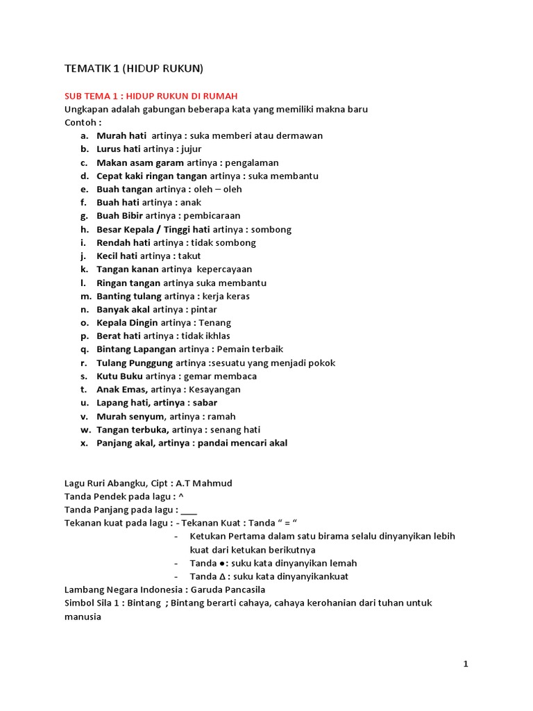 DOC) Materi Pembelajaran Kelas 2 Semester 1 Tema 1 Hidup Rukun Sub Tema 1 Hidup Rukun di Rumah Pembelajaran 1 | parjuangan nababan - Academia.edu