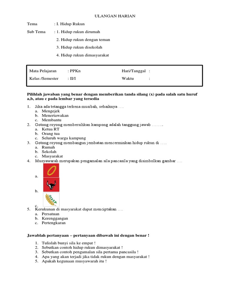 Kisi-kisi dan Contoh Soal Ujian Tengah Semester Kelas 2 SD Tema 1: Hidup Rukun - Halaman 2 - Tribunnews.com Mobile