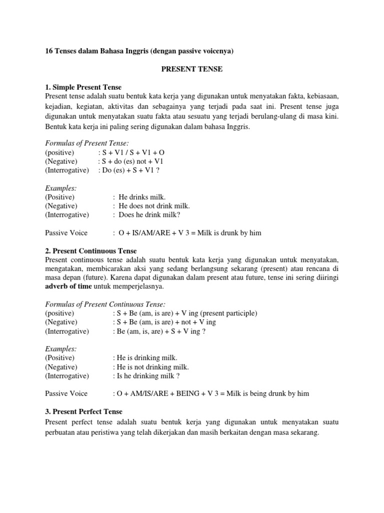 DOC) 6 Tenses ANd Example. Positive Negative Introgative 16 Tenses | Shodik Al Fajr - Academia.edu