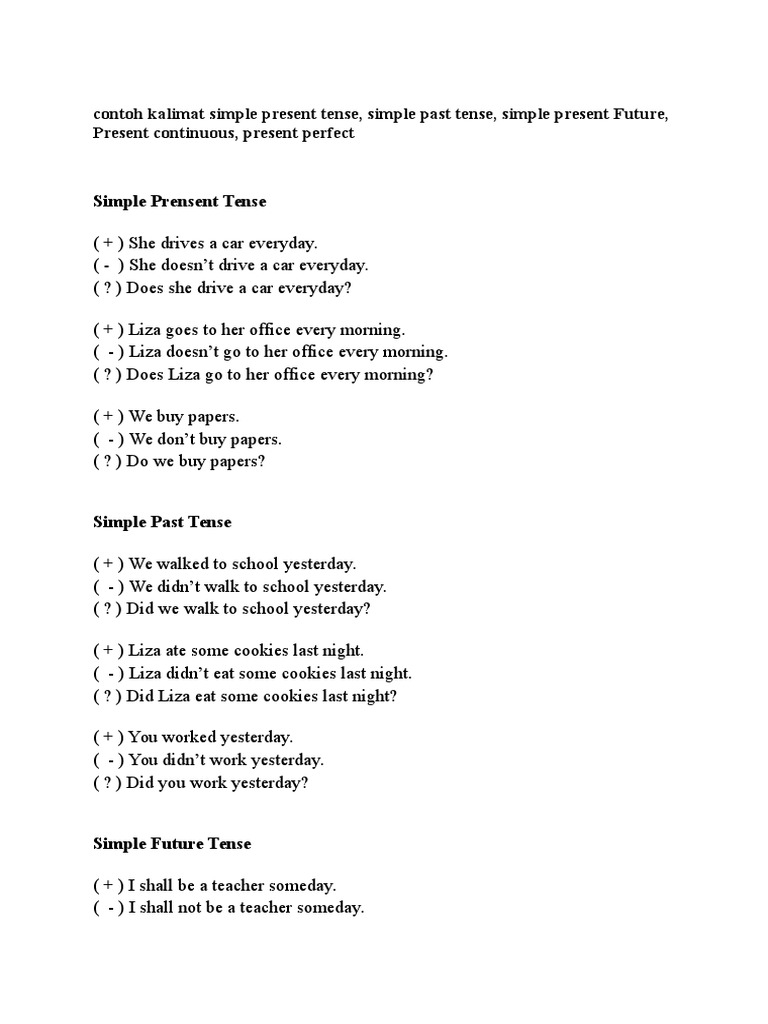 DOC) Macam-Macam, Penggunaan, Rumus dan Contoh Kalimat Tenses | defita anggi - Academia.edu
