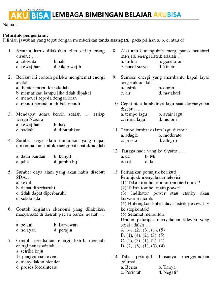 Latihan Soal Tema 2 Kelas 4