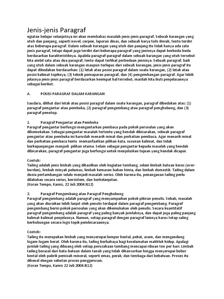 Jenis-jenis Paragraf
