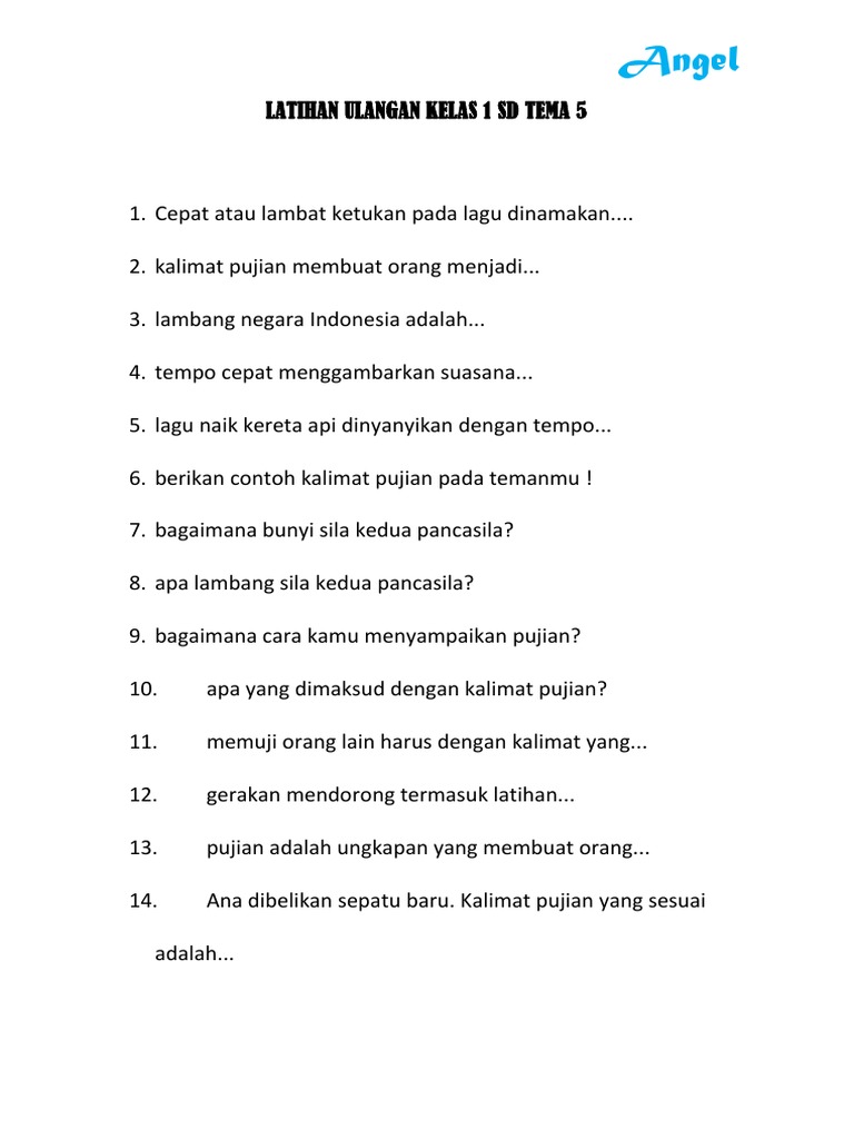 LATIHAN ULANGAN KELAS 1 SD TEMA 5.docx