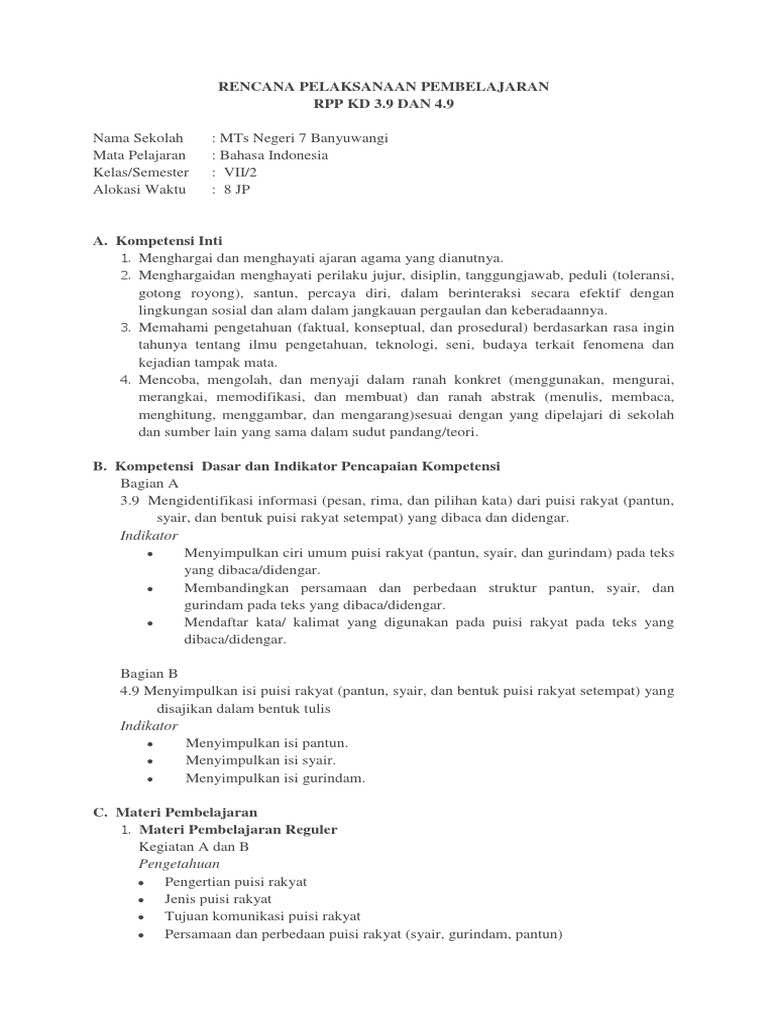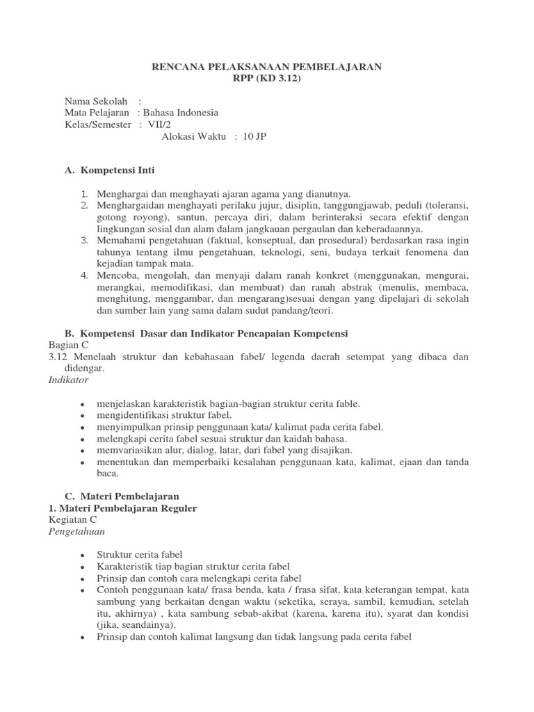 DOC) RPP Bahasa Indonesia Kelas VII Bab 6: Fabel | Asisten Nur - Academia.edu