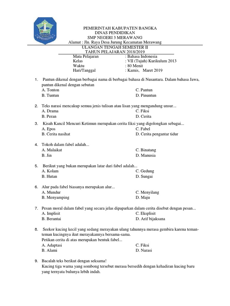 PDF) PAKET 1 LATIHAN UN SMP 2017 BAHASA INDONESIA | Ermawati Sudarman - Academia.edu