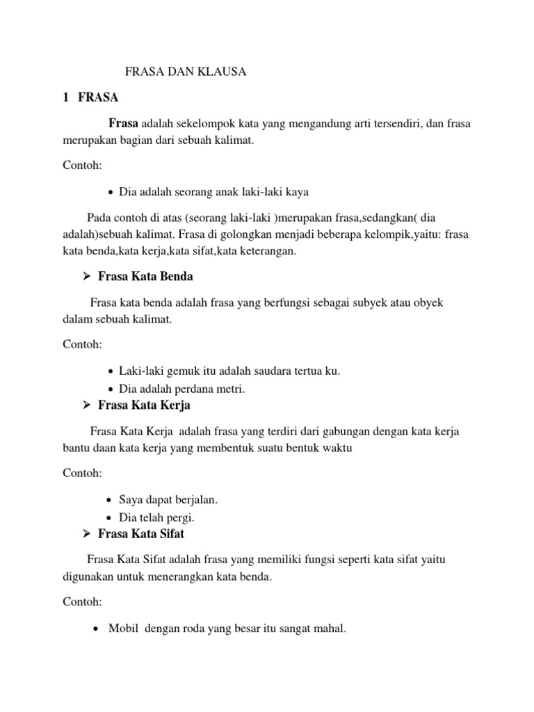 Contoh Kata Frasa | Contoh Soal Dan Materi Pelajaran 7