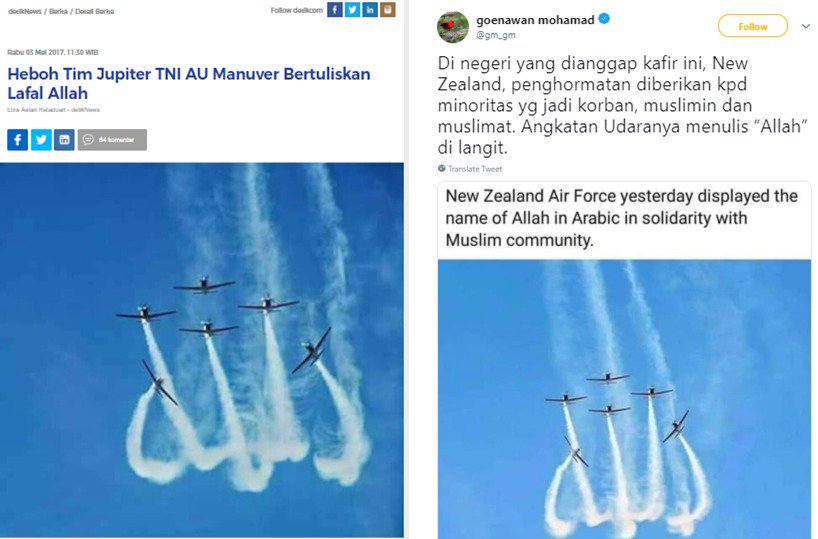 ElSang #AcehSelatan : “Pak Tua @gm_gm adalah contoh! Tak hargai karya anak bangsa!! Karya anak bangsa dg atraksi lafal Allah yg dilalukan @_TNIAU malah diklaim dilakukan pasukan NZ!! #PrabowoBentengNKRI… https://t.co/OB11T9VIXj”