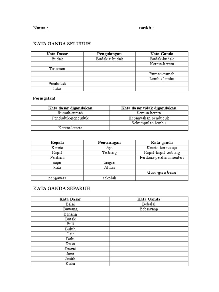 Nama: tarikh:: Kata Dasar Pengulangan Kata Ganda