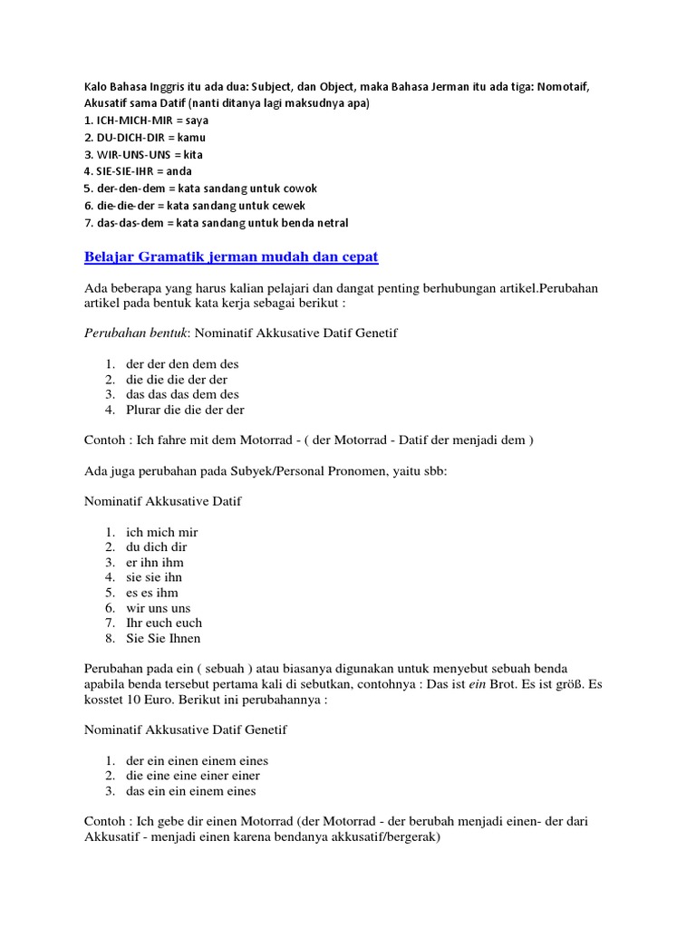 DOC) Panduan Gramatik Bahasa Jerman | Imaniar Hanifa - Academia.edu
