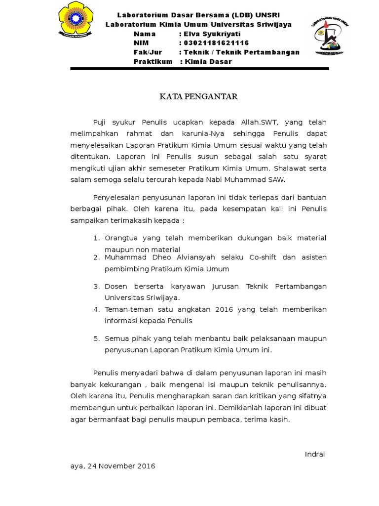 Contoh Kata Pengantar Laporan Praktikum Kimia Dasar - Kumpulan Contoh Laporan