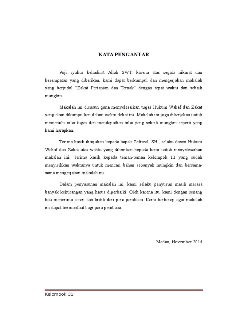 Contoh Kata Pengantar Makalah Tentang Zakat - Rasmi B