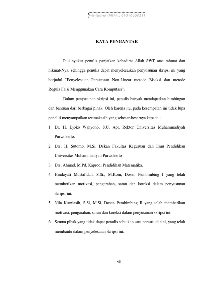 DOC) Contoh Kata Pengantar Skripsi Mahasiswa | dewi Itasari - Academia.edu