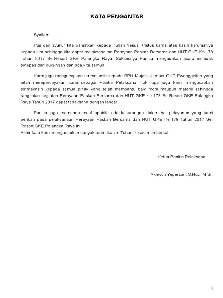 Contoh Kata Sambutan Ketua Panitia Paskah | informasi adalah