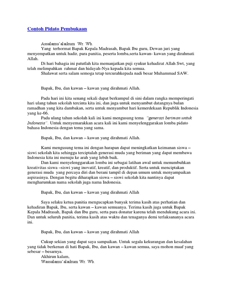 Contoh Pidato Pembukaan