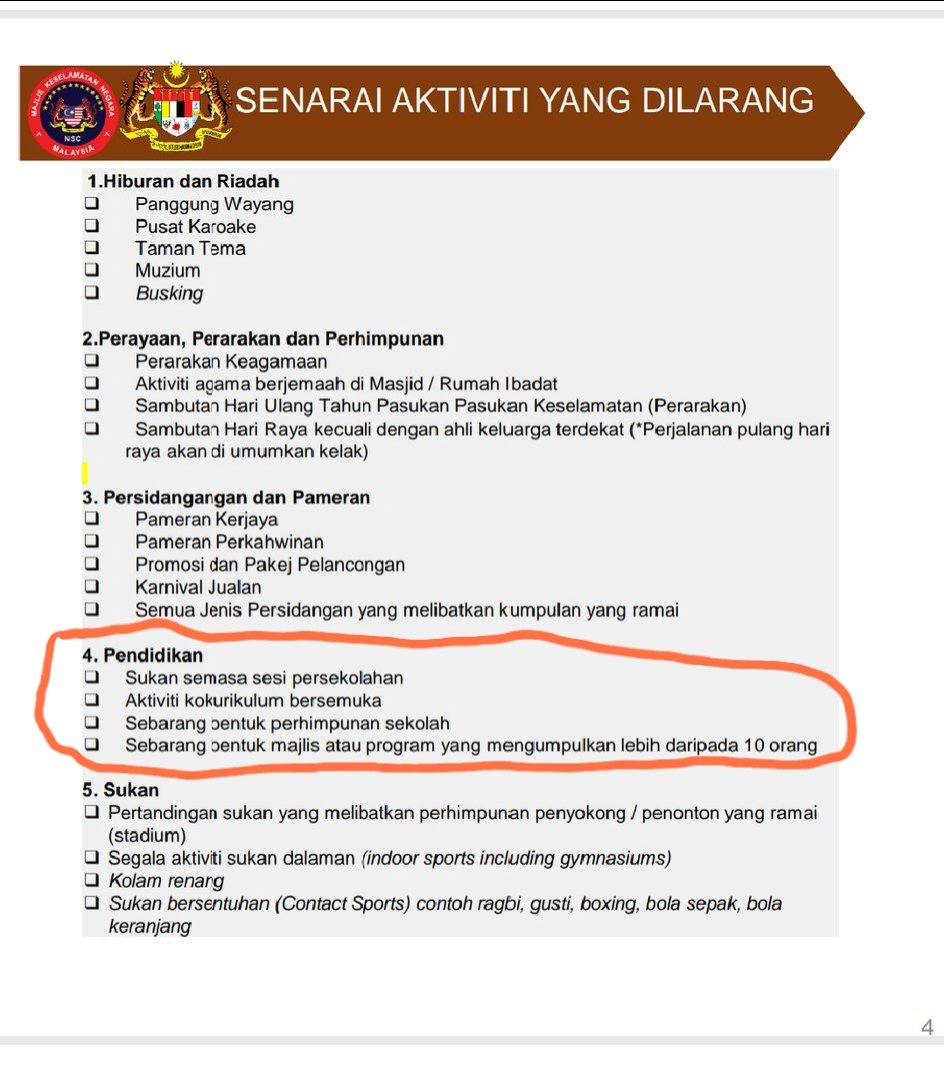 Ulya Husamudin en Twitter: “Sekarang ni sekolah boleh buka ke tak? Kalau ikut senarai MKN, buka, tapi sukan, koko dan gathering lebih 10 org tak boleh. Just fyi, sk, smk ni semua