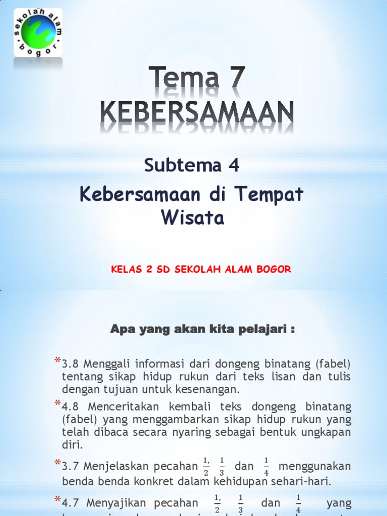 Subtema 4 Kebersamaan di Tempat Wisata: Kelas 2 Sd Sekolah Alam Bogor