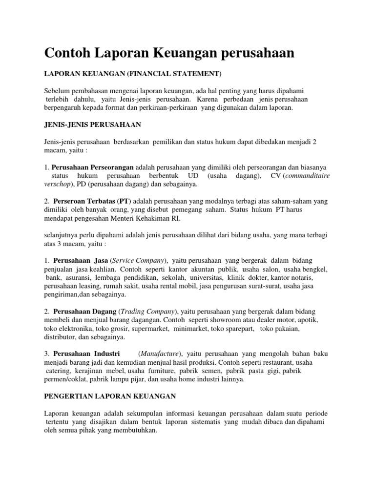 Contoh Laporan Keuangan Perusahaan Jasa - PDF Free Download