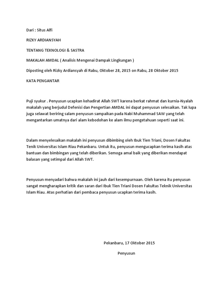 Contoh Surat Amdal Analisis Mengenai Dampak Lingkungan - Dapatkan Contoh