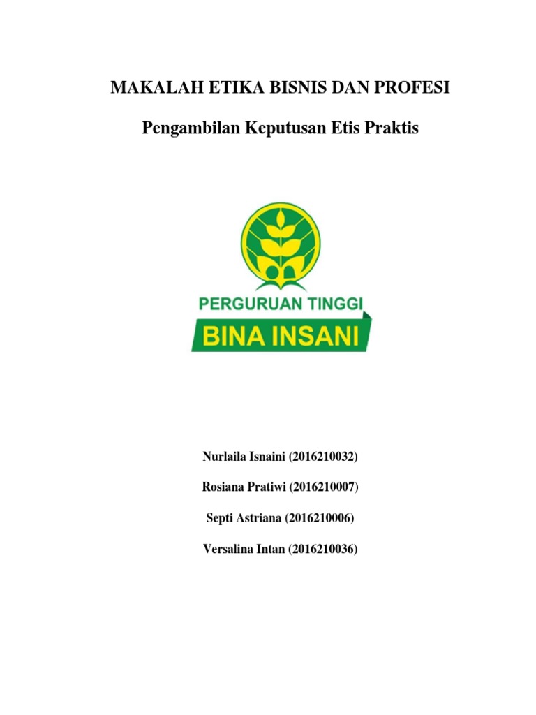 DOC) MAKALAH ETIKA BISNIS DAN PROFESI | chardyla via - Academia.edu