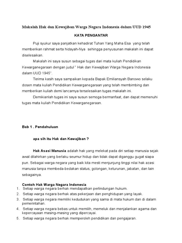 DOC) Makalah hak dan kewajiban warga negara BAB I Pendahuluan | anggi kobol - Academia.edu