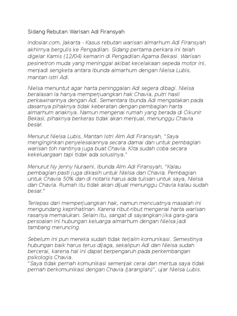 Contoh Makalah Kasus Hukum Perdata Tentang Warisan