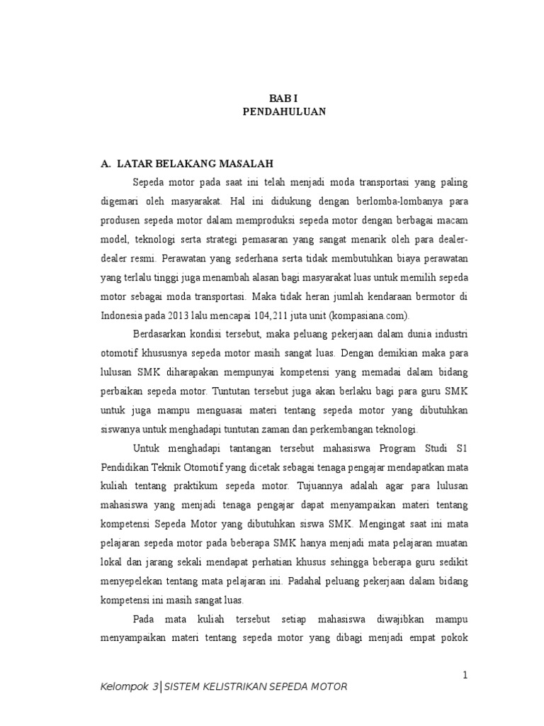 Contoh Makalah SMK Otomotif Tentang Sistem Kelistrikan Sepeda Motor