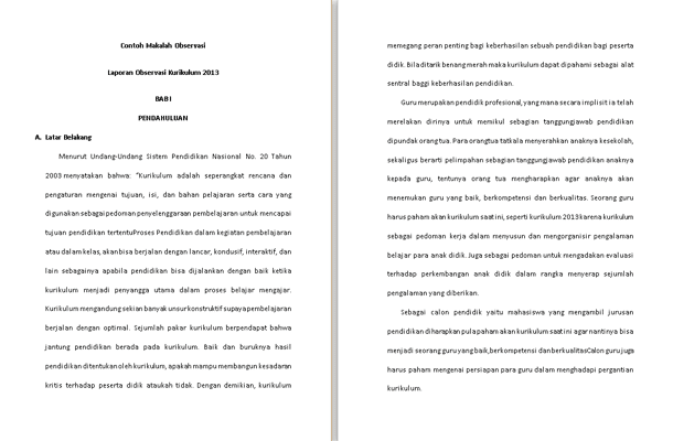 Contoh Laporan Observasi Kurikulum 2013 | Klik Contoh Makalah