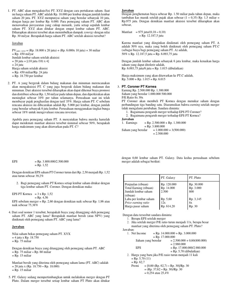 Contoh Soal Dan Jawaban Merger Dan Akuisisi Manajemen Keuangan - Guru Ilmu Sosial