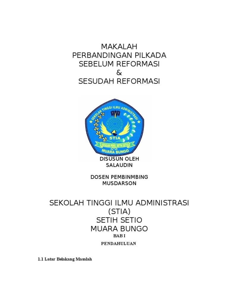 PDF) DINAMIKA POLITIK HUKUM PEMILIHAN KEPALA DAERAH ERA ORDE BARU DAN ERA REFORMASI DI INDONESIA Makalah