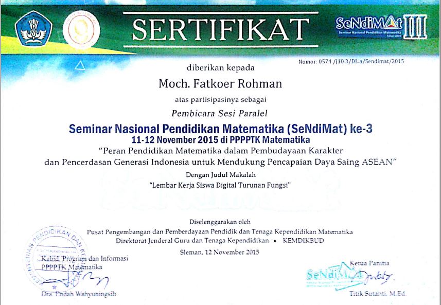 ZONA MATEMATIKA: SeNdiMAt (Seminar Nasional Pendidikan Matematika) III-2015