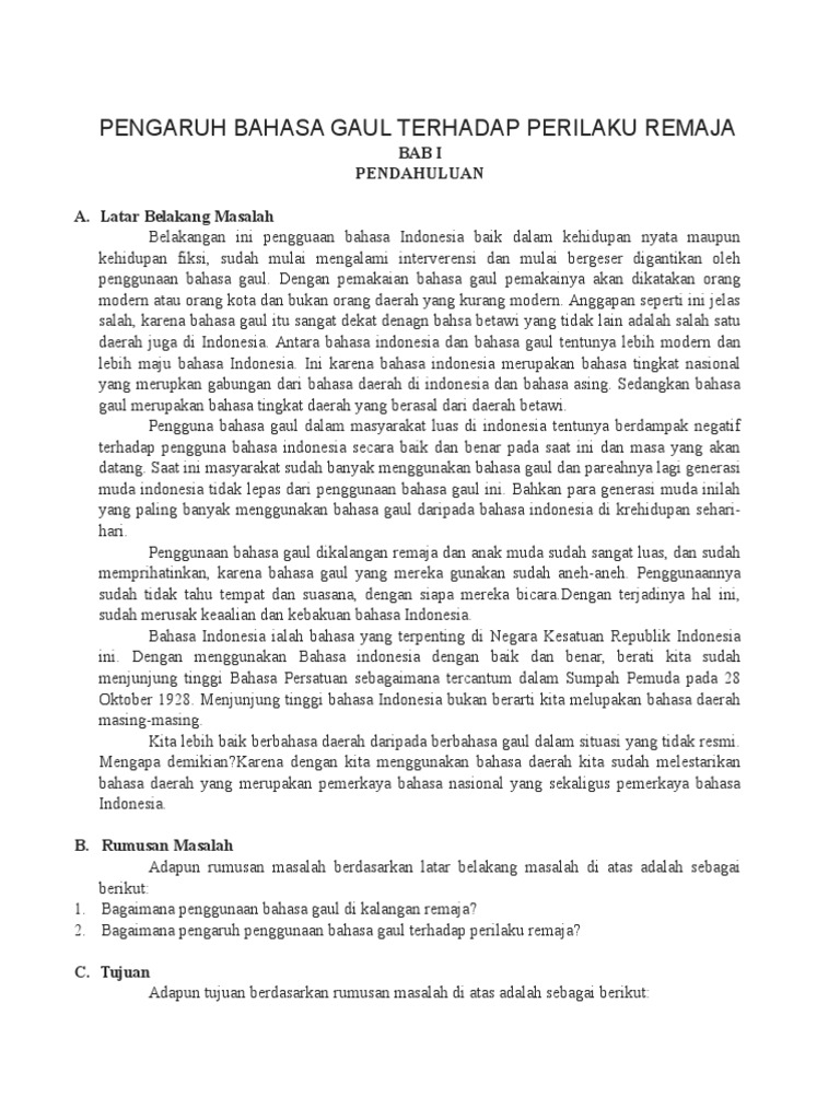 DOC) Pengaruh Bahasa Gaul terhadap Bahasa Indonesia pada Remaja | Raden Gita - Academia.edu
