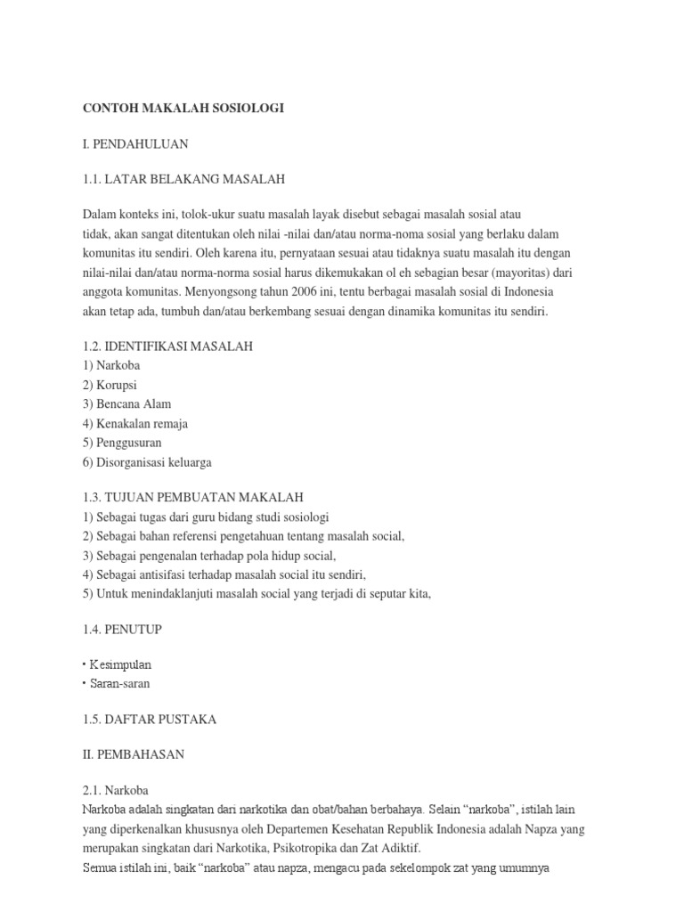 contoh makalah sosiologi i. pendahuluan 1.1.