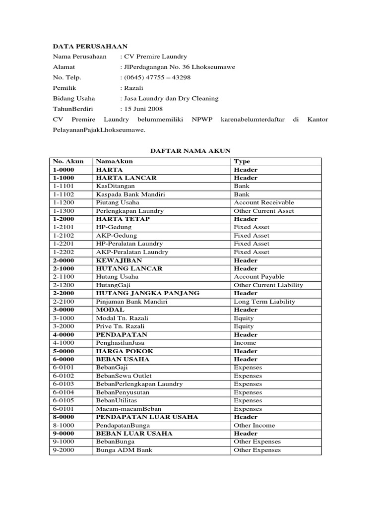 Soal Myob Perusahaan Jasa “Cv Putra Laundry”