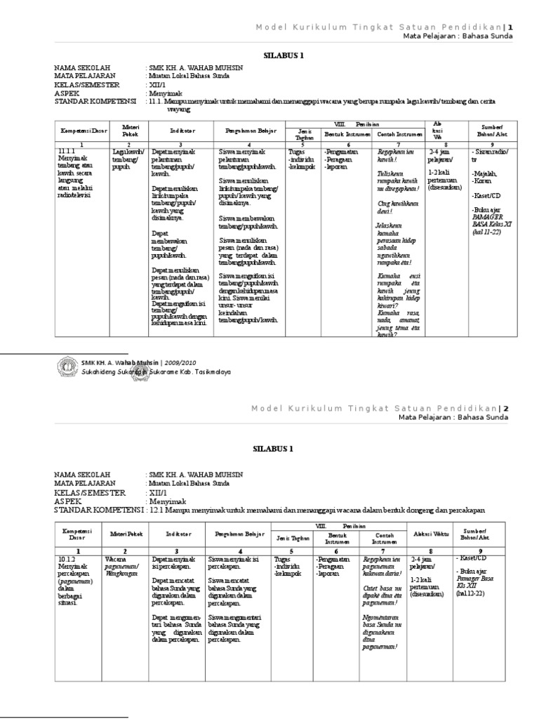 Silabus Bahasa Sunda Kls XII