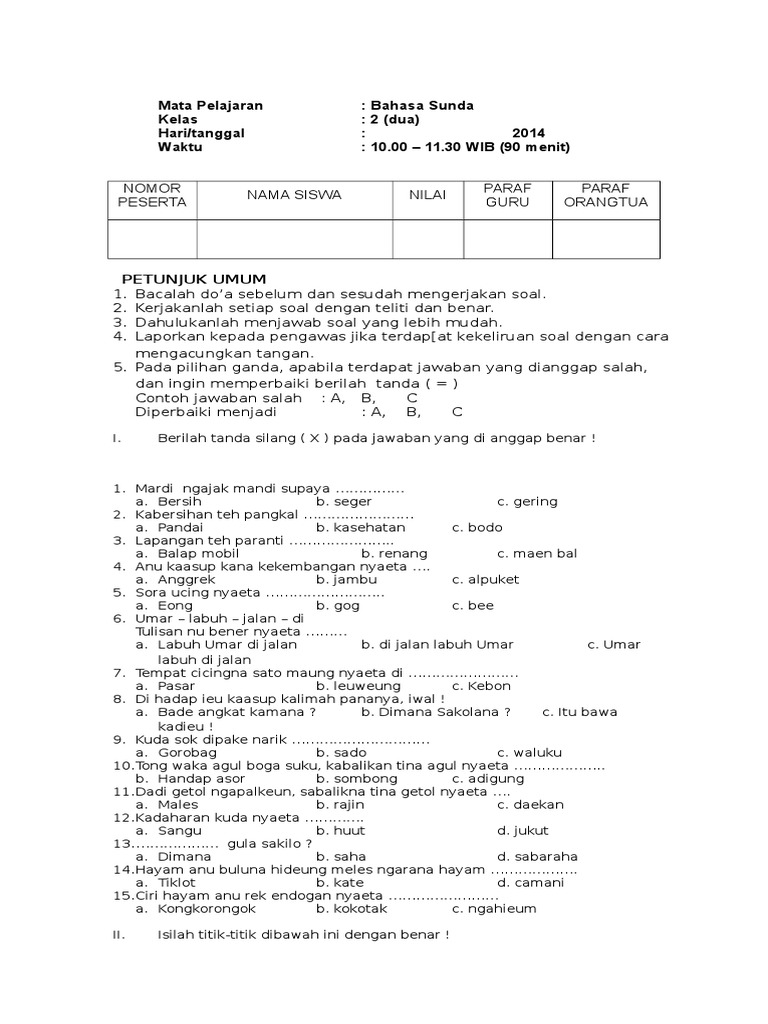 Soal Bahasa Sunda Kls 2