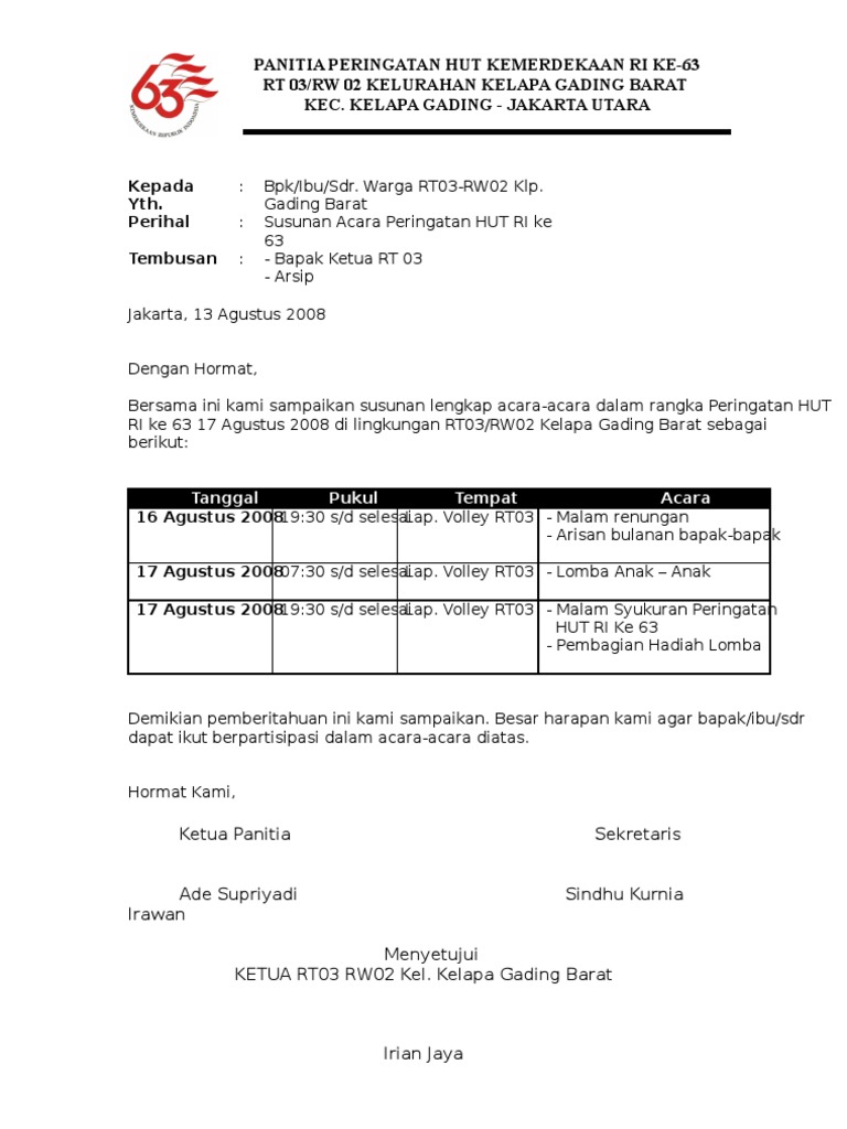 Surat Izin Proposal Giat Lomba Hut Ri Tingkat Rt - dogsterling’s diary