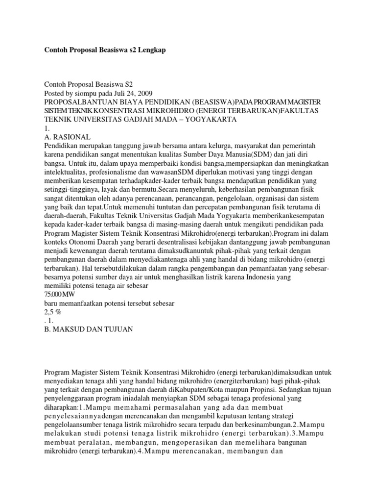 Contoh Proposal Beasiswa s2 Lengkap