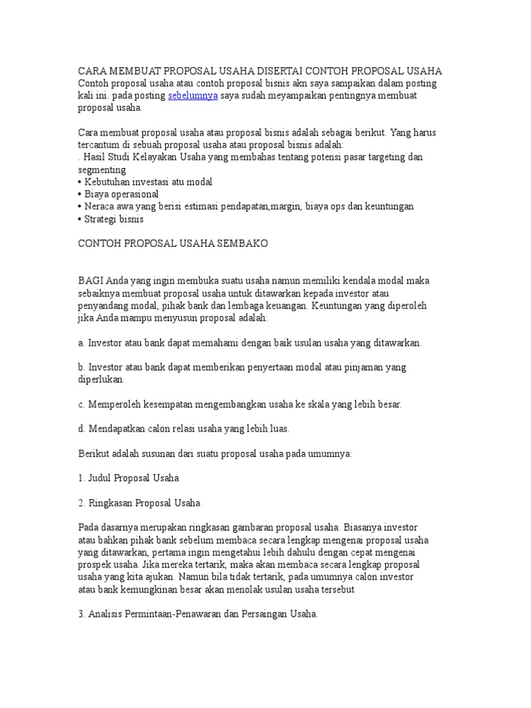 Cara Membuat Proposal Usaha Disertai Contoh Proposal Usaha - [DOC Document]